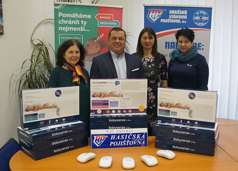 V rámci této podpory předal obchodní ředitel Hasičské vzájemné pojišťovny Mgr. Jiří Žižka zástupkyním nadace 10 monitorů dechu pro kojence do lůžka se světelným a zvukovým alarmem, prodávaných pod obchodním názvem BABYSENSE 2 PRO.